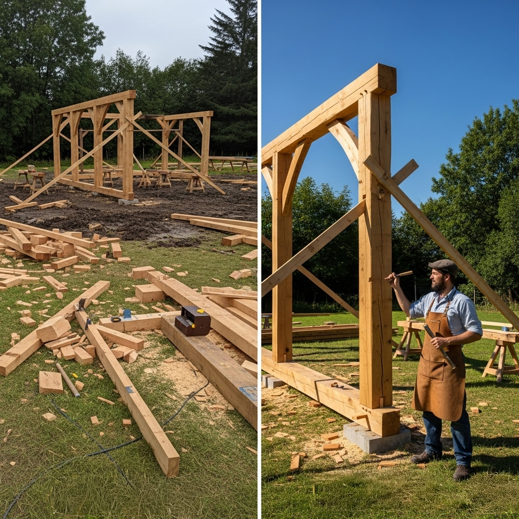 Matériaux de qualité : Nous sélectionnons rigoureusement nos bois et matériaux, privilégiant les circuits courts et les essences locales lorsque cela est pertinent, pour garantir la robustesse et l’esthétique de votre ouvrage.